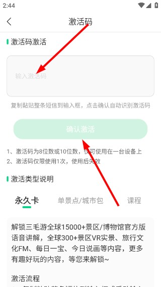 4、在【激活碼】頁面,輸入8位或10位數(shù)的激活碼后,點(diǎn)擊【確認(rèn)激活】即可完成權(quán)益激活,激活碼僅用一次。