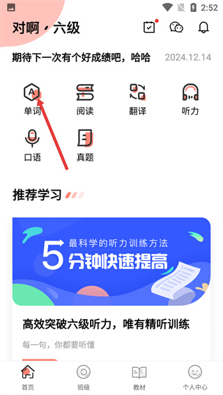 1、在【對(duì)啊·六級(jí)】首頁,點(diǎn)擊【單詞】功能選項(xiàng),進(jìn)入針對(duì)六級(jí)詞匯的背單詞專屬學(xué)習(xí)頁面,準(zhǔn)備配置單詞學(xué)習(xí)計(jì)劃。