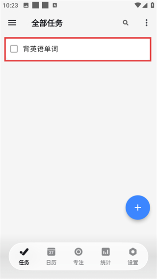2、進(jìn)入【全部任務(wù)】頁面,點(diǎn)擊頁面中的藍(lán)色【+】按鈕,可喚起添加任務(wù)的操作入口,準(zhǔn)備創(chuàng)建新任務(wù)。