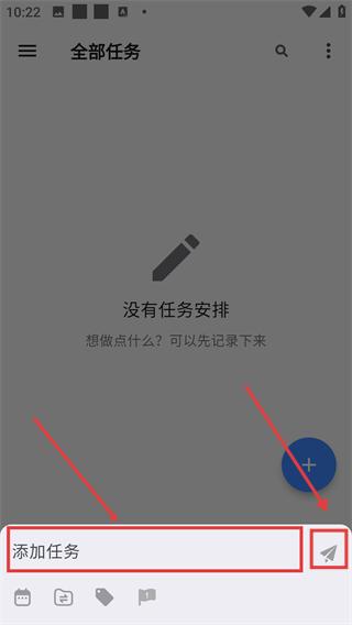 3、在【全部任務(wù)】頁面,填寫【添加任務(wù)】輸入框的內(nèi)容后,點(diǎn)擊輸入框右側(cè)的紙飛機(jī)按鈕,即可提交待創(chuàng)建的任務(wù)。