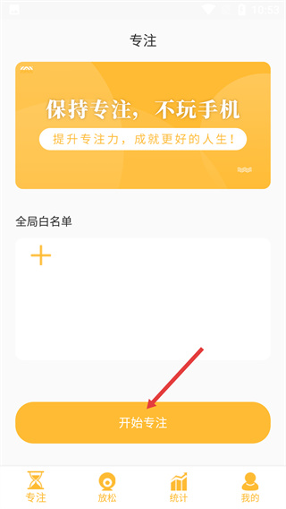 1、在專注功能頁(yè)面,點(diǎn)擊“開(kāi)始專注”按鈕,進(jìn)入專注時(shí)長(zhǎng)的選擇界面,準(zhǔn)備設(shè)定專注時(shí)間。