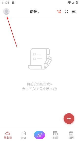 1、在便簽應(yīng)用主界面,點擊左上角的頭像按鈕,進(jìn)入包含【我的收藏】【我的分類】等功能的側(cè)邊欄頁面,當(dāng)前便簽為空可點擊“+”添加。