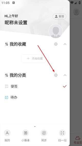2、在打開的側(cè)邊欄中,找到【我的分類】選項并點擊,進(jìn)入分類管理頁面,可查看現(xiàn)有【便簽】【待辦】兩類分類。