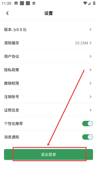 4、在【設(shè)置】頁(yè)面,點(diǎn)擊頁(yè)面底部的【退出登錄】按鈕,即可完成當(dāng)前賬號(hào)的退出操作。