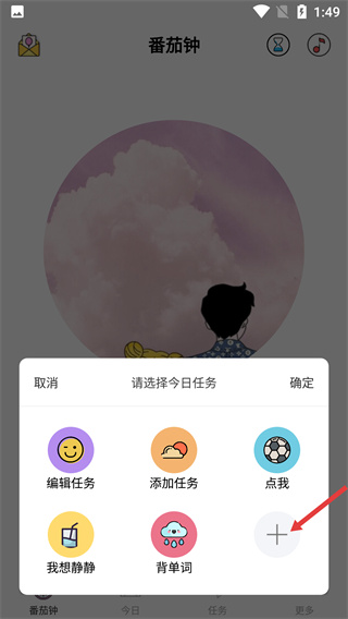 2、在任務(wù)選擇彈窗中,點擊加號按鈕,進入“新的任務(wù)”編輯頁面,可進行任務(wù)命名、選圖標(biāo)等操作。