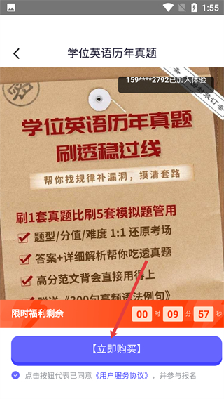 4、進入【學位英語歷年真題】詳情頁,該資源1:1還原考場,含解析與范文,點擊底部【立即購買】可獲取該備考資料。