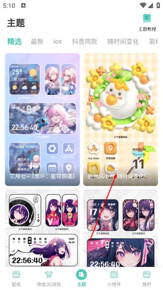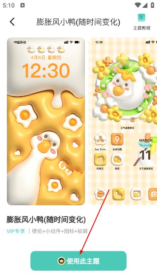2、進(jìn)入【主題】頁(yè)面,可查看不同分類的主題,選擇【膨脹風(fēng)小鴨(隨時(shí)間變化)】主題,進(jìn)入其詳情頁(yè)面。