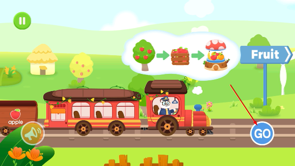 3、在預(yù)覽場景頁面,點擊“GO”按鈕,推進到具體的單詞學(xué)習(xí)展示環(huán)節(jié)。