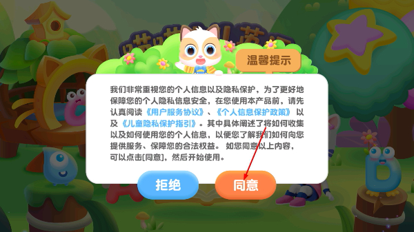 1、閱讀隱私保護(hù)相關(guān)協(xié)議后,點(diǎn)擊溫馨提示彈窗中的“同意”按鈕,進(jìn)入APP的主界面。