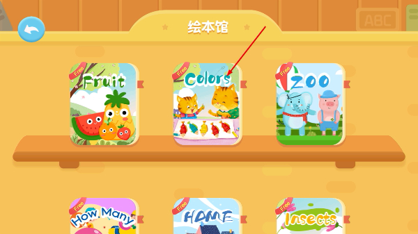 3、進(jìn)入繪本館后,選擇“Colors”主題的繪本,進(jìn)入該繪本的閱讀學(xué)習(xí)環(huán)節(jié)。