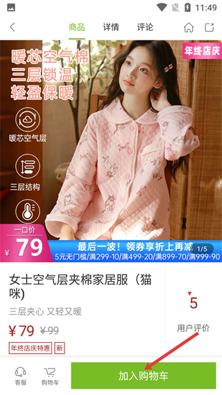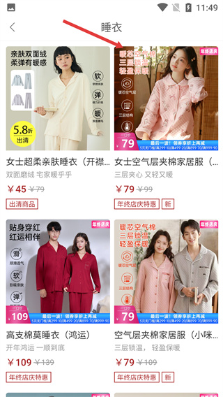 2、在睡衣商品列表頁,選定目標商品,點擊進入該商品的詳情頁面。