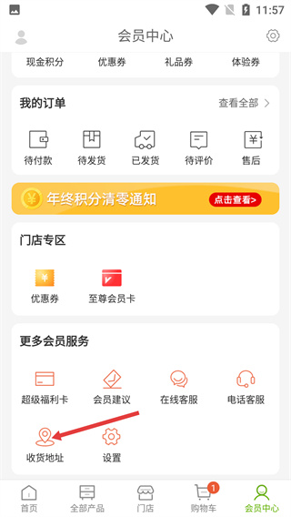 2、在會員中心頁面,找到并點擊【收貨地址】選項,進入收貨地址的管理頁面。