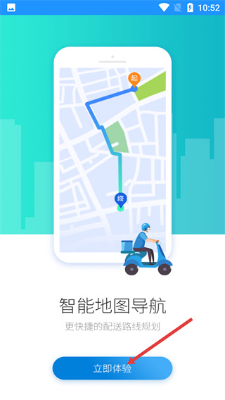 1、進入APP的智能地圖導(dǎo)航頁面,點擊“立即體驗”按鈕,進入APP的登錄頁面。