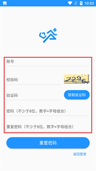 3、進入密碼重置頁面,按要求填寫賬號、校驗碼等信息,完成密碼重置的信息錄入步驟。