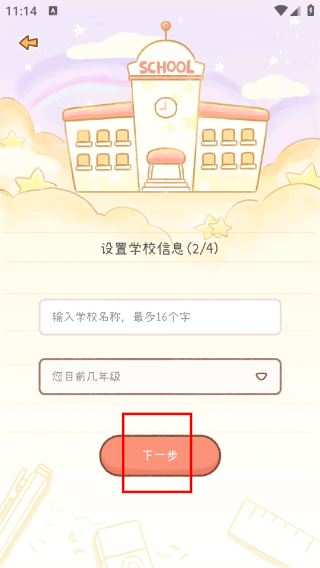 3、接著在信息頁(yè)面填寫(xiě)學(xué)校名稱、選擇年級(jí)后,點(diǎn)擊【下一步】按鈕,進(jìn)入課程時(shí)段的配置頁(yè)面。