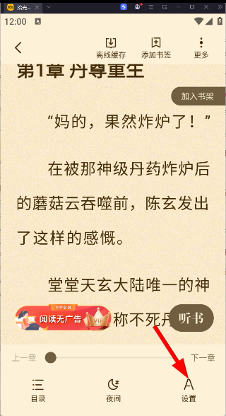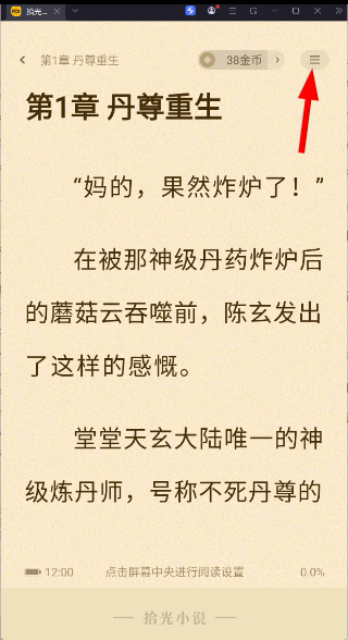 1、在書城玄幻榜板塊,點擊目標(biāo)書籍《暴力丹尊》的條目,進(jìn)入該書籍的章節(jié)閱讀頁面。