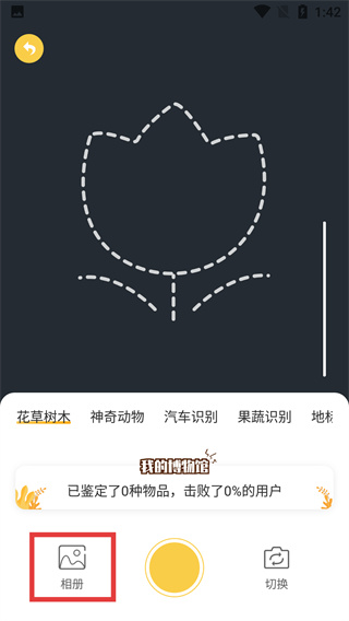 3、在識(shí)別界面中,點(diǎn)擊底部的【相冊】選項(xiàng),進(jìn)入本地相冊頁面,可從中選擇需要進(jìn)行識(shí)物操作的圖片。