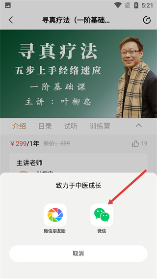 4、在彈出的分享選項中,選擇【微信】渠道,即可將該課程分享至微信平臺。