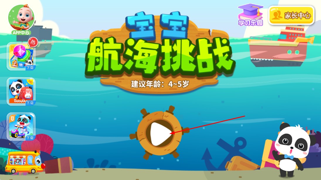 1、點(diǎn)擊開始按鈕,進(jìn)入《寶寶巴士航海挑戰(zhàn)》游戲,開啟航海之旅。