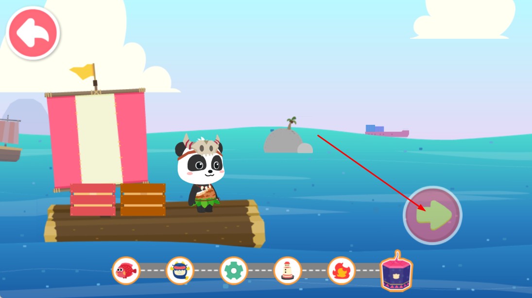 3、點(diǎn)擊前進(jìn)按鈕,操控船在海上航行,探索不同區(qū)域。