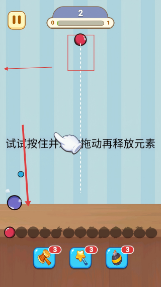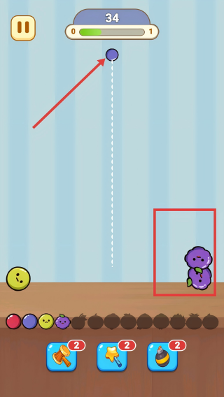 2、布局觀察技巧:每次掉落前觀察下方水果布局,盡量讓新水果落在同種類附近減少空間浪費(fèi)提高效率。
