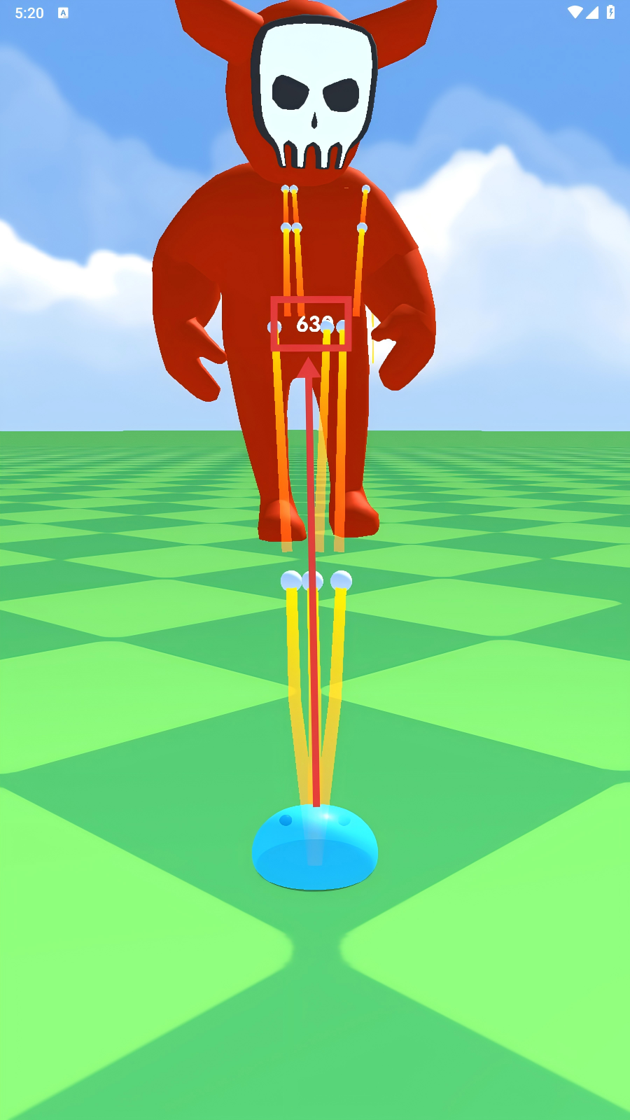 3、遇到紅色帶骷髏面具的大角色時,操控史萊姆發(fā)射物體進行攻擊,留意攻擊數(shù)值變化,全力對抗該角色。