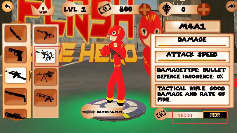 4、當(dāng)我們攢夠一定金幣時,可前往在武器選擇界面,購買自己心儀的武器,提升角色的戰(zhàn)斗能力。