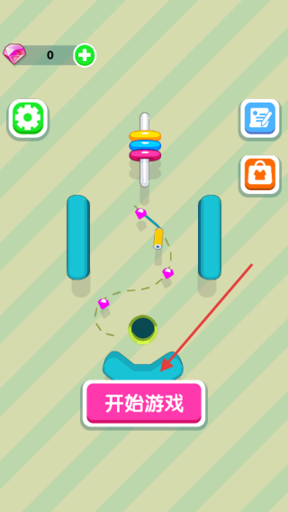 1、開局我們點擊屏幕下方粉色的“開始游戲”按鈕,進入游戲關(guān)卡,準(zhǔn)備進行甜甜圈掉落的挑戰(zhàn)。