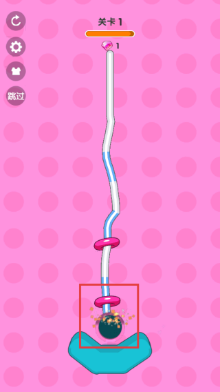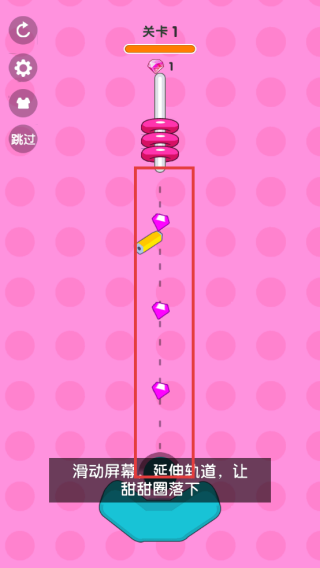 2、通過滑動屏幕延伸管道,讓管道能承接上方的甜甜圈,使甜甜圈沿著管道順利下落。