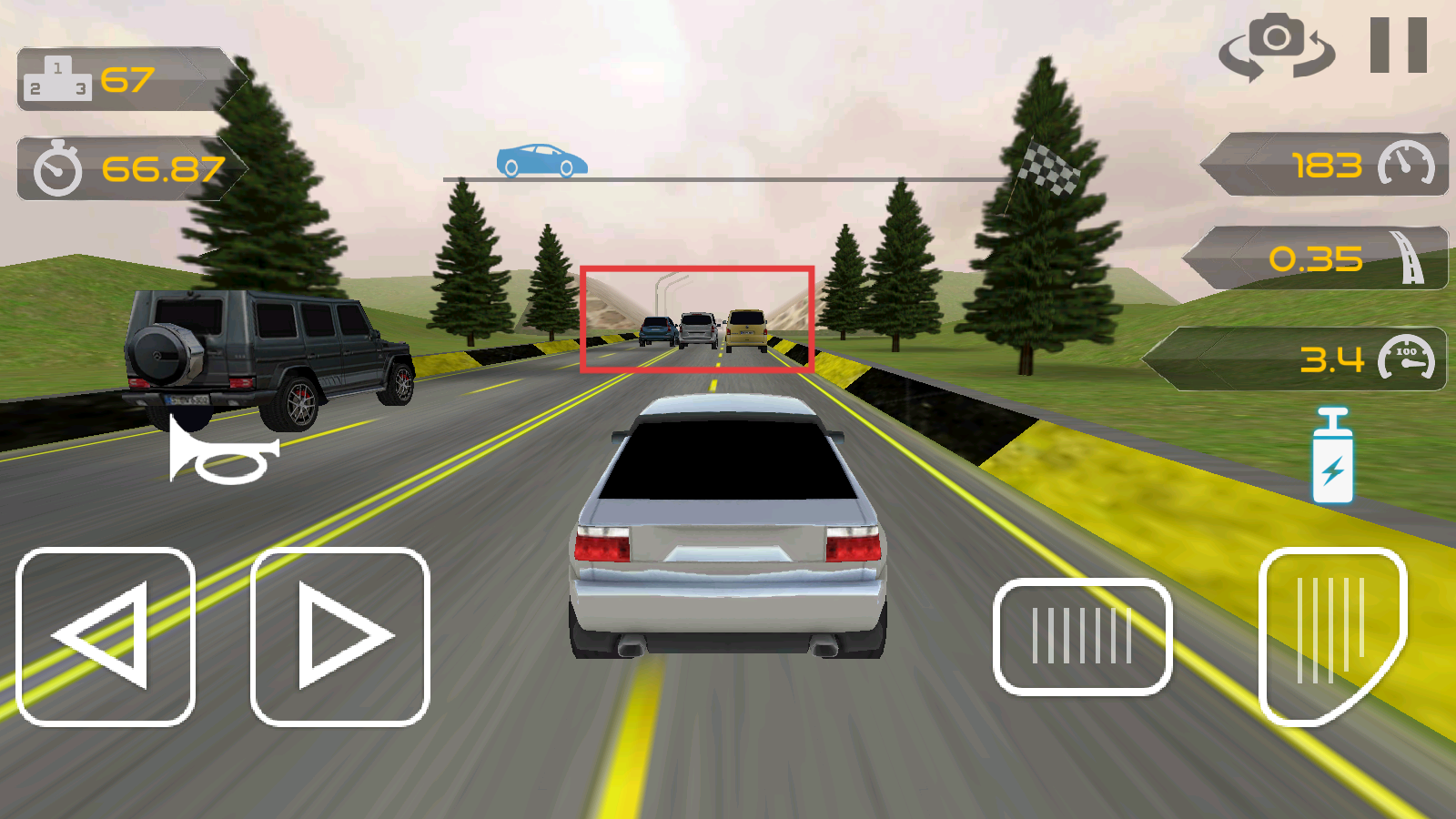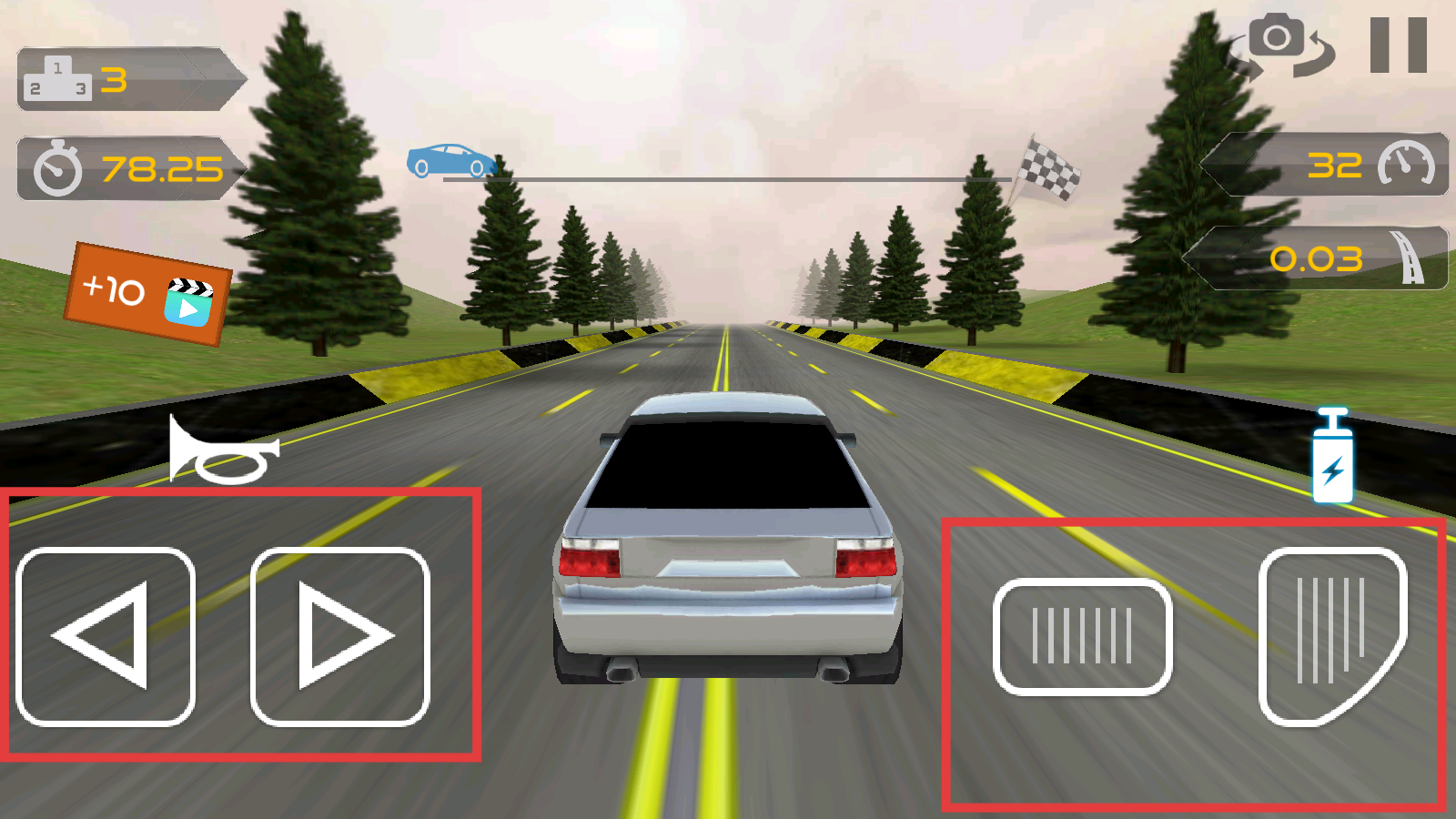 2、使用左右箭頭控制方向,右側(cè)按鈕控制加速和剎車。