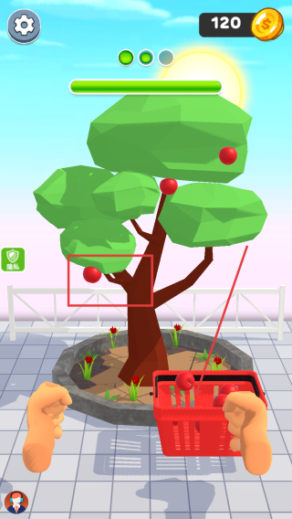 3、用紅色籃子收集樹上的果實(shí),積累果實(shí)數(shù)量,為后續(xù)的收獲與獎(jiǎng)勵(lì)做準(zhǔn)備。