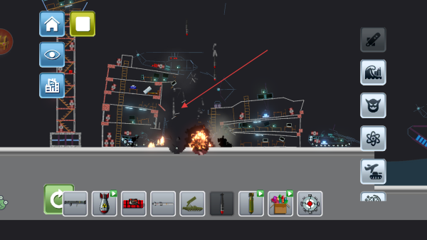 1、上帝視角操控:用戶以上帝視角觀察場景并部署摧毀工具,如爆破裝置和切割器械,點(diǎn)擊指定位置啟動破壞過程,體驗全局指揮的掌控感和策略樂趣。