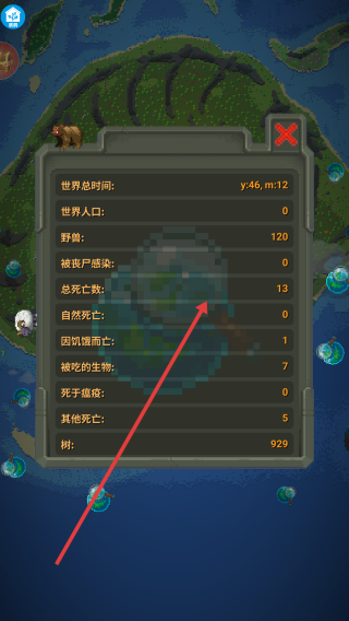 2、查看世界信息面板,了解世界時間、人口、野狼數(shù)量等關鍵數(shù)據(jù),把握游戲世界現(xiàn)狀。