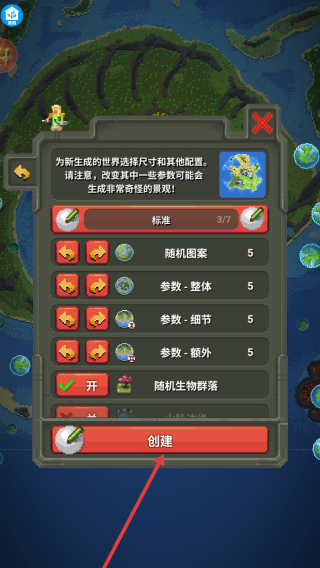 4、設置好世界尺寸、圖案等參數(shù)后,點擊【創(chuàng)建】,生成新的游戲世界,開啟探索之旅。