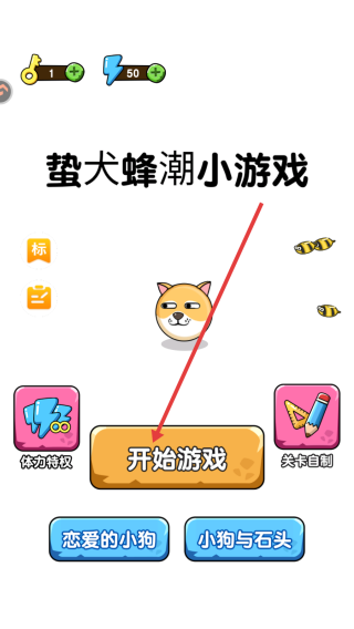 1、進入游戲,看到【蟄犬蜂潮小游戲】界面,點擊中間顯眼的【開始游戲】按鈕,即可開啟第一關(guān)。
