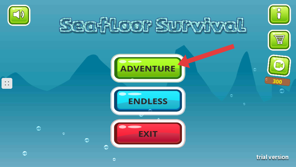 1、在游戲主界面,點(diǎn)擊【ADVENTURE】按鈕,進(jìn)入冒險模式關(guān)卡。
