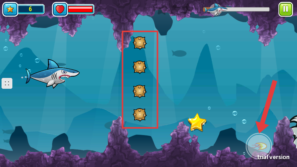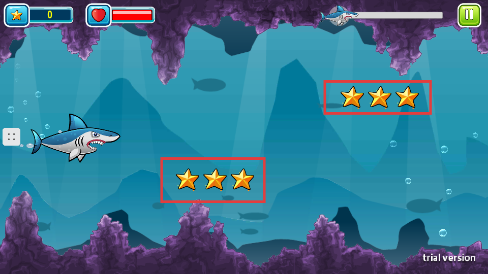 2、游戲過程中,留意屏幕上的【星星】收集目標(biāo),操控鯊魚收集星星以獲取分?jǐn)?shù)。