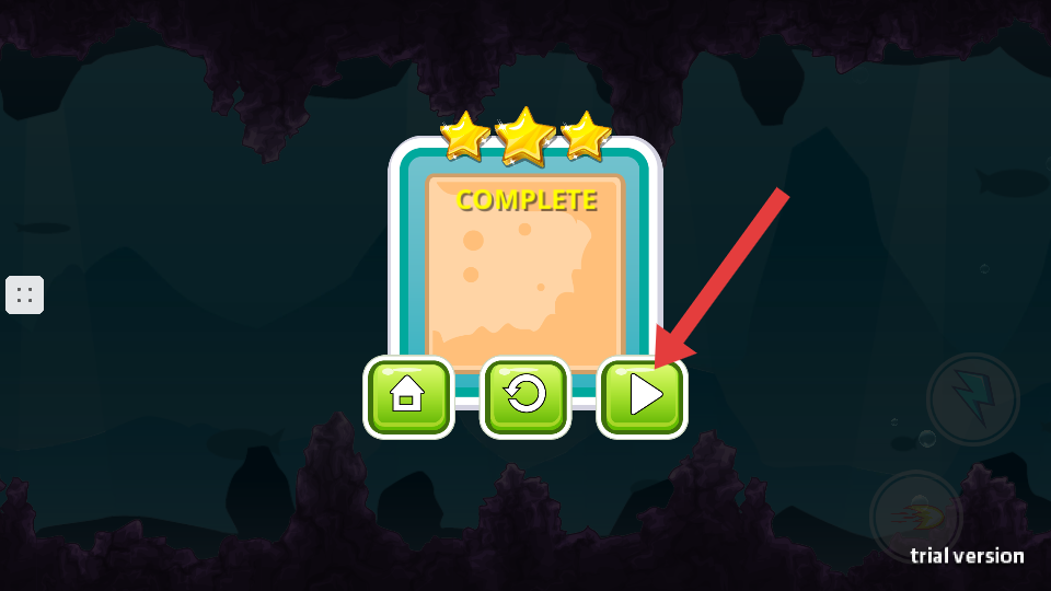 4、成功通過關(guān)卡,看到【COMPLETE】提示和星級評價后,點(diǎn)擊右側(cè)的【播放】按鈕(綠色三角形圖標(biāo)),進(jìn)入下一關(guān)繼續(xù)挑戰(zhàn)。