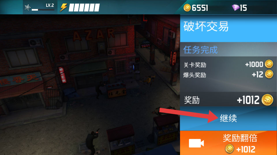 4、成功完成任務(wù)后,查看任務(wù)獎勵,點擊【繼續(xù)】按鈕,挑戰(zhàn)下一個狙擊任務(wù)。
