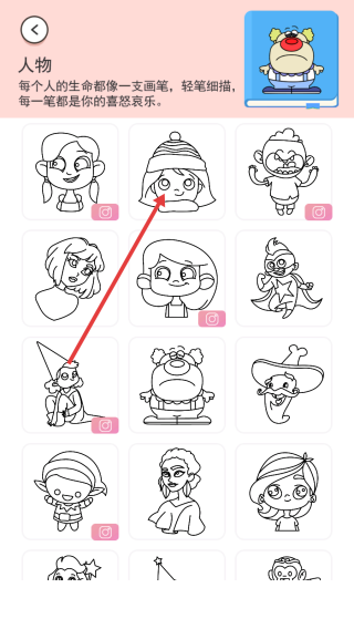 1、進(jìn)入“人物”主題繪畫游戲,選擇想要繪制的人物簡筆畫,開啟繪畫創(chuàng)作之旅。