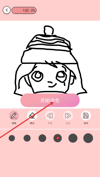 4、當(dāng)輪廓繪制完成,點擊【開始涂色】按鈕,即可進(jìn)入涂色環(huán)節(jié),為人物增添色彩。