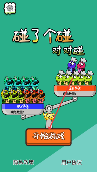 1、進入“碰了個碰-對對碰”游戲,點擊【開始游戲】按鈕,選擇對戰(zhàn)的烏龜陣營,開啟游戲?qū)帧?