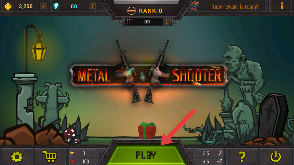 1、在游戲主界面點擊【PLAY】按鈕,快速進(jìn)入【METAL-SHOOTER】游戲關(guān)卡。