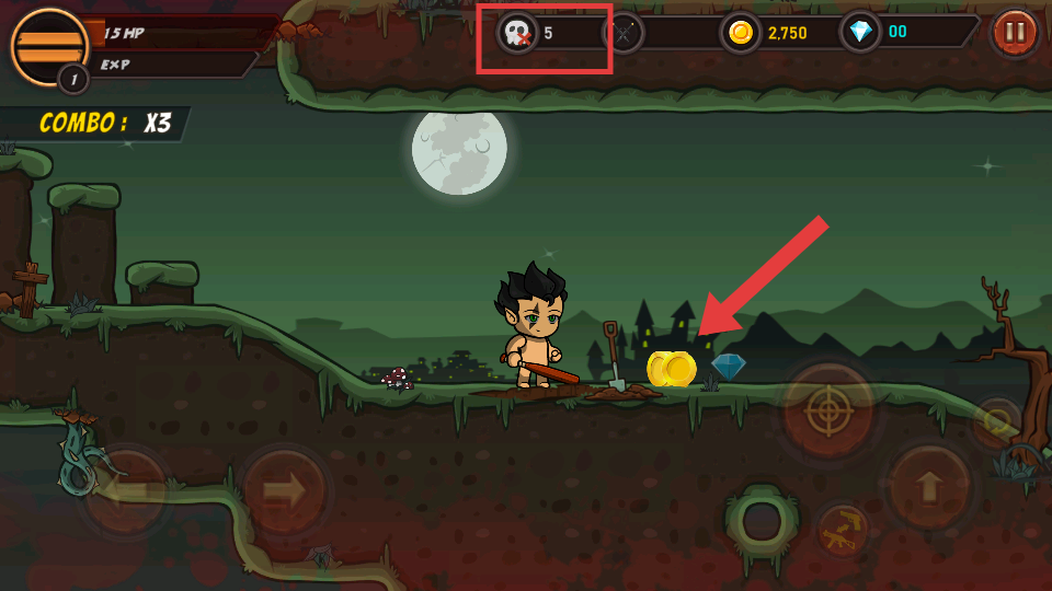 4、擊敗敵人后,注意收集掉落的金幣等資源,同時留意屏幕上方【骷髏頭】敵人剩余數(shù)量。