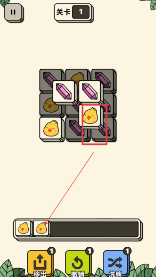 2、關(guān)卡中會(huì)有小雞和紫色水晶方塊,觀察方塊分布,嘗試移動(dòng)方塊,讓相同元素聚集,為消除做準(zhǔn)備。