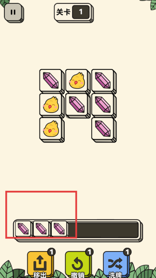 4、持續(xù)移動(dòng)方塊,使相同元素不斷聚集,在收集欄中湊齊三個(gè),完成消除,推進(jìn)關(guān)卡進(jìn)程。