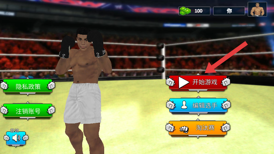 1、在游戲主界面點擊【開始游戲】按鈕,快速進入拳擊對戰(zhàn)關(guān)卡。