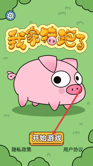 1、進(jìn)入《我家豬跑了》游戲,點(diǎn)擊【開始游戲】按鈕,進(jìn)入第一關(guān),開啟抓豬挑戰(zhàn)。