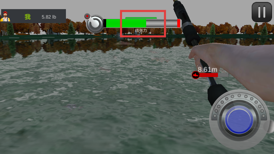 3、釣魚過程中,留意【線張力】提示,按提示操作控制魚線,防止魚逃脫。