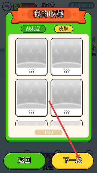4、當(dāng)關(guān)卡完成,會(huì)進(jìn)入【我的收藏】界面,此時(shí)點(diǎn)擊【下一關(guān)】按鈕,即可進(jìn)入下一個(gè)關(guān)卡繼續(xù)挑戰(zhàn)。